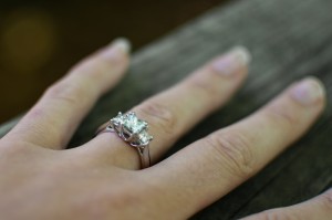 There is something on my left finger. It’s sparkly and gorgeous and very impressive considering I didn’t give the boy any hints.