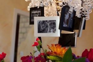 The party was perfect. Leo and I arrived early, to find the house beautifully decorated. Black-and-white photos of peppered the room, standing up on the counter, hanging from the dining room chandelier with ribbons and standing in frames on the fruit and cheese table. Candles, glitter, glass decorative rocks.