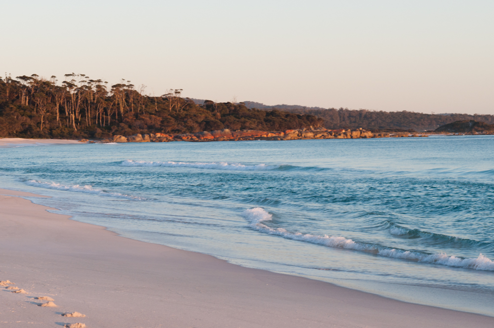 Binalong Bay. You can see the Bay of Fires rocks in the background.