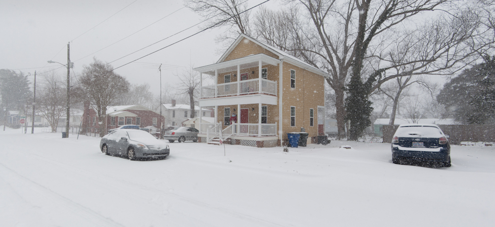 Every few years, North Carolina gets a good amount of the white stuff. Here’s our street today as Raleigh was blanketed by snow. It didn’t stay pretty for too long as the rain and sleet came a little later.