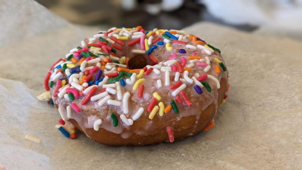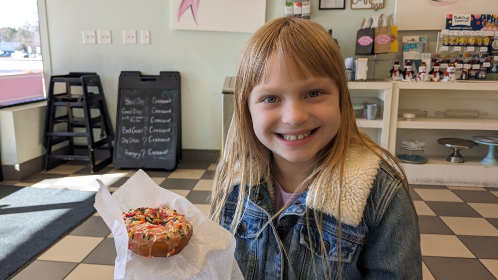 How to choose the first one on our 2024 dessert quest? Easy. You ask the 8-year-old. After Rory was thinking donuts one weekend in January, we looked around town for places that had things like eclairs, crullers, and donuts. We stumbled on a shop that we’ve never been to in Burney’s Sweets and More.