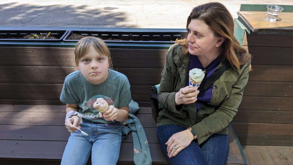 On this beautiful Spring day, the wind was certainly moving. As soon as we stepped outside to enjoy our cones on Videri’s parklet, the wind got a taste of Rory’s whipped cream and blew it right off the top of her cone. We even have photographic evidence of this dramatic event.
