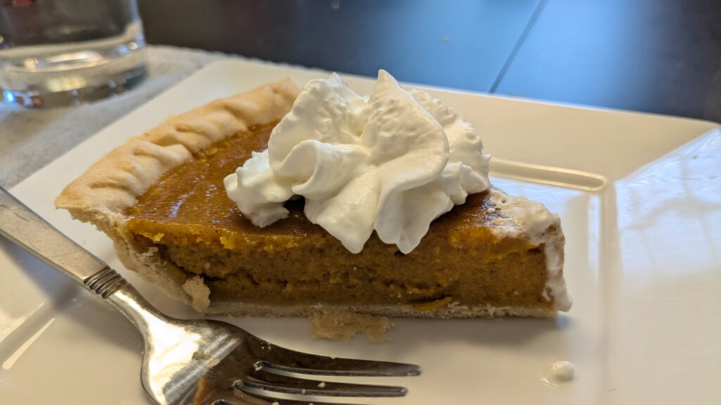 Turns out, carrot pie is delicious! We were all pleasantly surprised by how tasty this was. Think along the lines of pumpkin pie or sweet potato pie. Tastes like Fall in a pie! I highly recommend, and I may even add this to the Thanksgiving menu this year.
