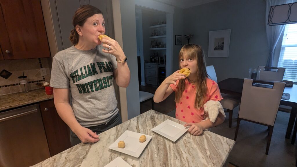 We may have cheated a bit as a “honey cruller” looks very specific but a regular French cruller, we found at Baker’s Dozen in Raleigh. They have two locations and after striking out (they didn’t have any) at the first location, we committed and drove all the way to the second. We were successful!
