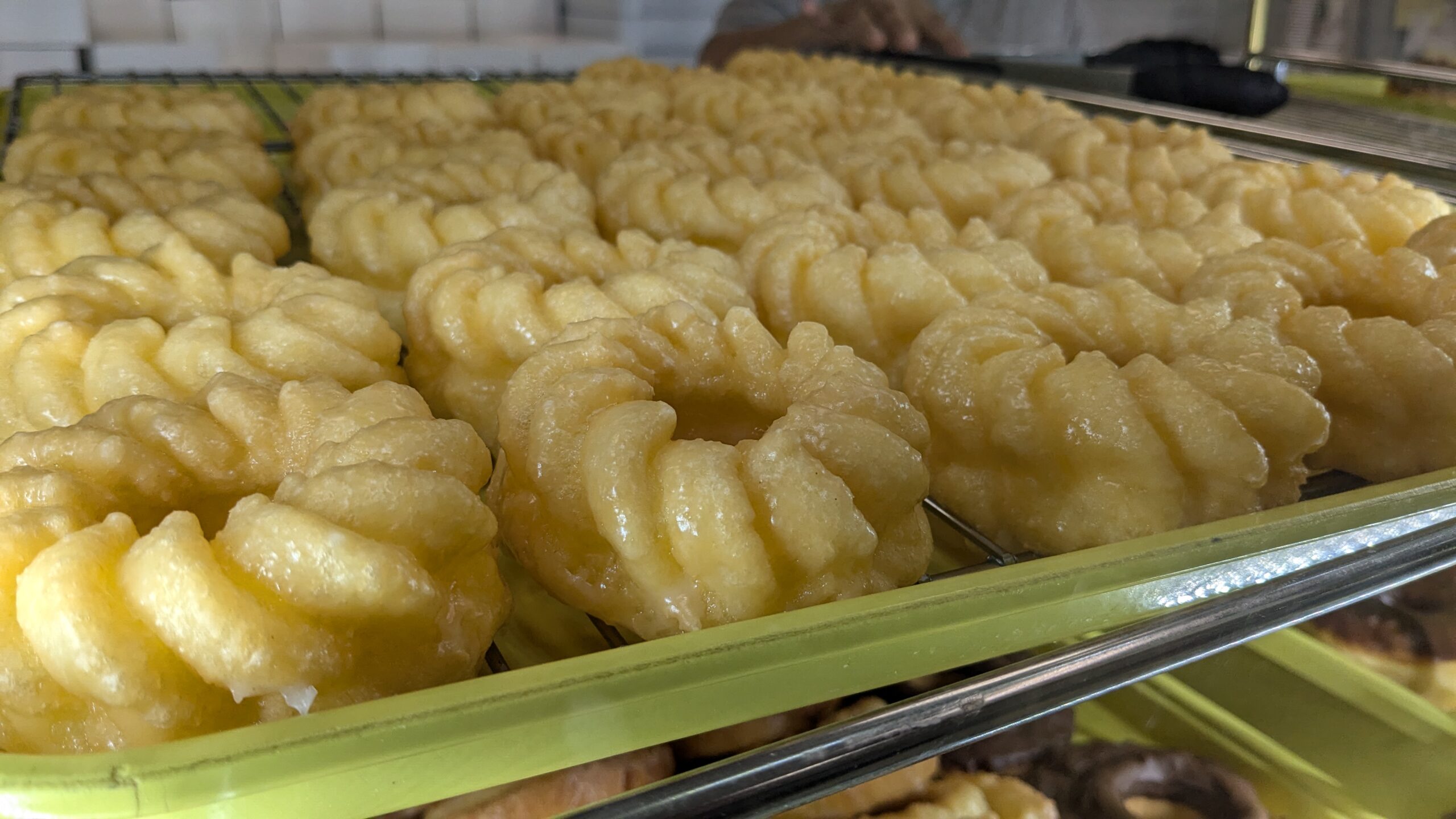 We may have cheated a bit as a “honey cruller” looks very specific but a regular French cruller, we found at Baker’s Dozen in Raleigh. They have two locations and after striking out (they didn’t have any) at the first…